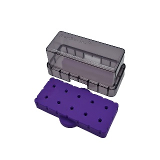 BurButler - Small BurButler Small with space for 10 burs. Short lid suitable for FG and RA burs. The BurButler is a dental bur holder designed with the veterinary dentist in mind. It's easy to open for quick bur access, is fully autoclavable, and is made from high quality materials so it will last and protect your dental burs for years. This elegant, yet durable bur block is made from flexible medical grade silicon with a strong protective lid. Available in four colours for easy identification for different veterinarians or procedures. The BurButler lets you confidently, efficiently and safely organise, sterilise, access and care for some of your most important dental instruments. Easy manipulation of dental burs: - Spacing between burs allows for easy one-handed access and removal or replacement of your dental burs - Only a very light force is needed and should be used to insert and secure the burs or to remove them - The lid can be inverted for multi-use burs that may require manual cleaning Steam autoclave: - Lid can be placed on base for autoclave cycle - Assembled set can be bagged as required Washer disinfector or ultrasonic bath: - Place the burs and BurButler in the washer disinfector or ultrasonic bath as required - Separate the lid and base during these procedures - Through holes in the base and tessellated orifice design allow irrigation of the bur shaft and drainage Burs not included.