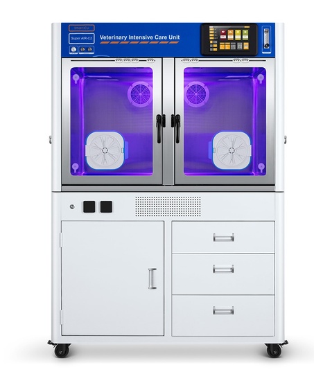 CAGE ICU VETERINARY SINGLE AVEC ARMOIRE INOX C2-D