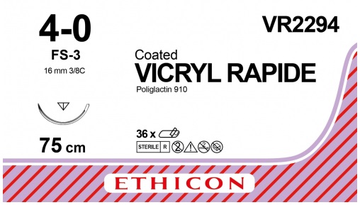 La résistance à la traction disparaît totalement entre le 10e et le 14e jour après l'implantation. Le fil Vicryl Rapide est totalement résorbé au bout de 42 jours par hydrolyse.Fils de sutures destinés au rapprochement des tissus mous lorsqu'un soutien de courte durée est possible et quand une résorption rapide de la suture est bénéfique. De par leur résorption rapide, les fils Vicryl Rapide sont particulièrement adaptés à la fermeture des plaies cutanées, spécialement en chirurgie pédiatrique, aux épisiotomies, aux circoncisions et aux sutures de la muqueuse buccale. En outre, les fils Vicryl Rapide ont donné de bons résultats en chirurgie ophtalmologique pour les sutures conjonctivales.