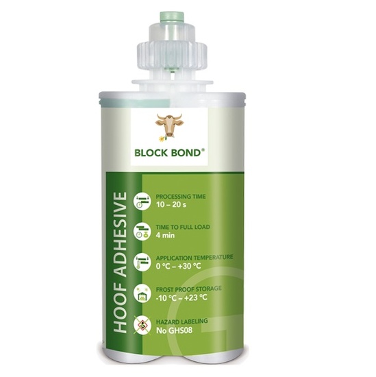 De tweecomponentenlijm Block Bond is een geavanceerde oplossing voor het effectief en duurzaam lijmen van houten zolen op de klauwen van runderen. Speciaal ontworpen om te voldoen aan de specifieke behoeften van veehouders, biedt deze lijm uitzonderlijke hechting en superieure weerstand, waardoor een stevige en betrouwbare bevestiging van de houten zolen wordt gegarandeerd.