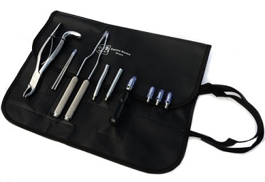 - Paar roestvrijstalen 26 cm wolftandtang en een stevige, matte handgreep met twee roestvrijstalen schroefverlengingen (één recht, één offset).