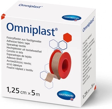 Omniplast est un sparadrap de fixation hypoallergénique en textile avec couche adhésive en caoutchouc synthétique, apposée en bandes. Il est perméable à l'humidité et à l'air, de fixation fiable, particulièrement solide et résistant à la traction, s'enlève sans laisser de résidus.