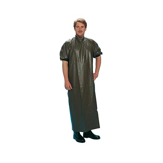 Casaque légère et imperméable. L’attache se fait par un velcro au dos. Les coutures sont soudées. Les manches sont courtes, le tour de bras en caoutchouc est réglable. Casaque en PVC (69%) et en nylon (31%).